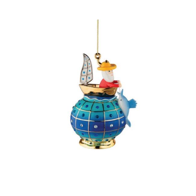 La boule de Noël Il Vecchio e il Mare est une sublime pièce à poser dans votre sapin pour les fêtes de fin d’année. Elle représente un pêcheur dans son bateau qui remonte un poisson. Une touche ludique à apporter à votre décoration de Noël. Cette boule est en porcelaine décorée à la main.