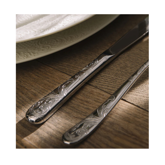 Couture est une superbe collection de couverts inspirée par la haute couture : un motif audacieux et délicat référence aux grands dentelliers, gravé à la main sur l’inox. Ses lignes sont raffinées, chaque matrice est travaillée manuellement. Ces couverts apportent une touche d’élégance à votre table.