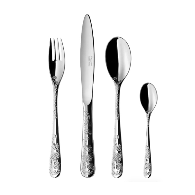 Fabriqué en Normandie, le travail d’orfèvre est perpétué de générations en générations. Chaque couvert est le fruit d’opérations minutieuses garantissant une finition parfaite et une durabilité reconnue. Ces couverts sont labellisés “Entreprise du patrimoine vivant” qui incarnent l’excellence et le savoir-faire exceptionnel de nos artisans.
