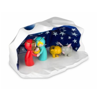 La crèche Miracolo d’Alessi représente une œuvre de design originale, pensée pour renouveler la scène de la Nativité. Conçue par Marcello Jori et Massimo Giacon, cette pièce associe des figures aux formes carrées inspirées de l’esthétique des jeux vidéo, insérées dans une étable au graphisme linéaire — une fusion réussie entre tradition et avant-garde.