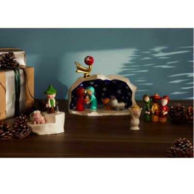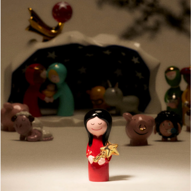 Figlio delle Stelle (Enfant des Étoiles) est un personnage de la crèche Happy Eternity Baby, né de la créativité foisonnante de Massimo Giacon et Marcello Jori. Laissant libre cours à leur imagination très personnelle, les deux créateurs revisitent cette représentation classique de la Nativité, donnant vie à une galerie de personnages qui voient le jour pour égayer notre Noël – comme Figlio delle Stelle, une intrigante figurine rouge qui porte une petite étoile souriante dans les bras.