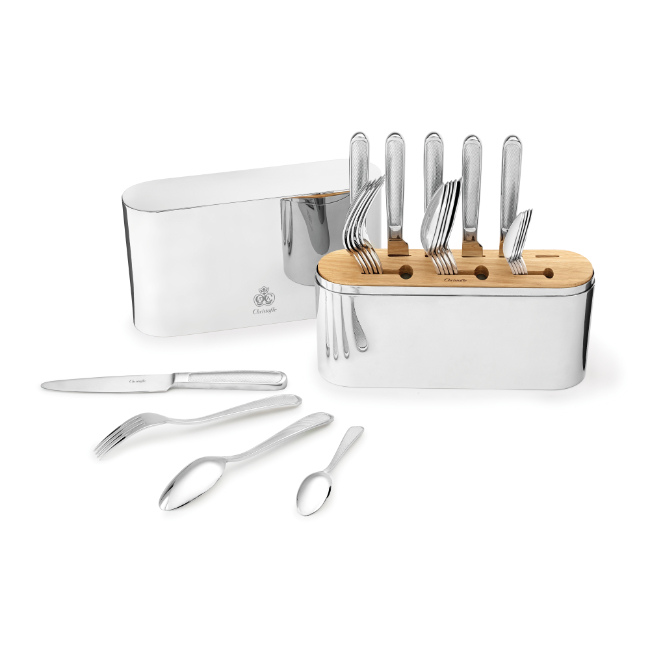 La ménagère 24 couverts Concorde Acier est élégant et sobre. Avec Concorde, Christofle propose un nouvel écrin aux lignes urbaines associé à des couverts inédits.