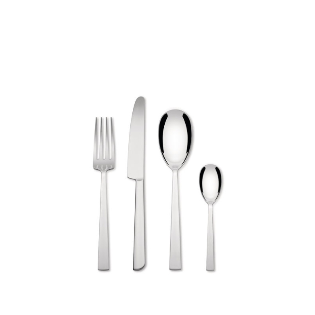 La ménagère ASTA signée Alessi incarne parfaitement l’élégance du design italien contemporain. Avec ses lignes sobres et équilibrées, chaque pièce – fourchette, couteau, cuillère de table et petite cuillère – est pensée pour offrir une prise en main confortable et une esthétique raffinée.