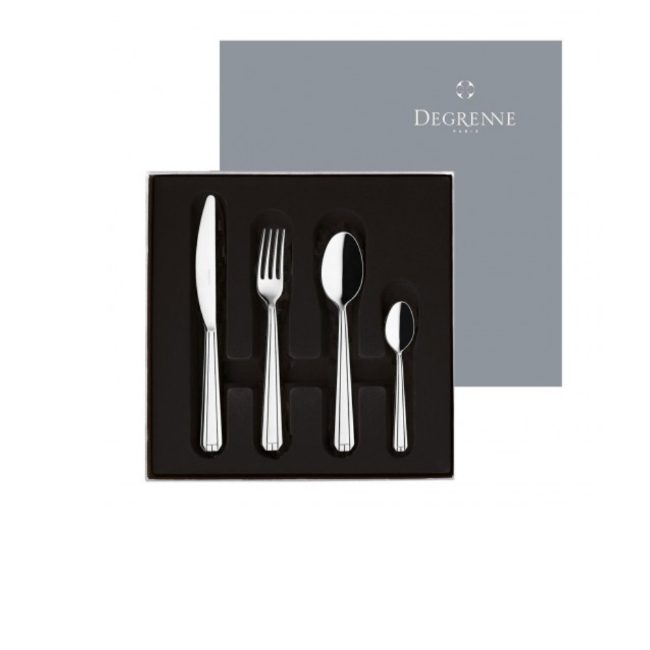 Add to compareLa ménagère Normandy 24 couverts en acier est revisitée à l’occasion du 70éme anniversaire de Degrenne. Elle avait autrefois été créée en 1948. Il lui apporte un style plus épuré et ergonomique. Son couteau de table bénéficie d’une micro-denture très fine. Une allure rappelant la période ArtDéco, mais restant profondément actuelle.