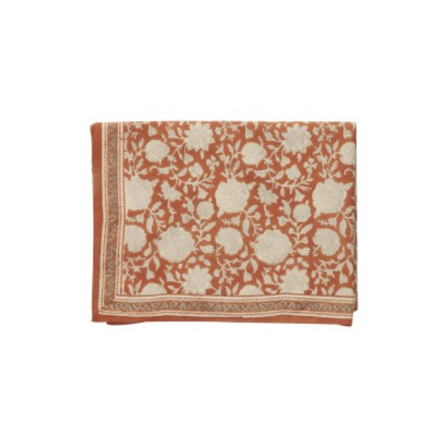 La nappe Tupia offre un style bohème à votre table et à votre intérieur. L’imprimé se pare de fleurs indiennes ce qui rend cette nappe très légère et originale. La nappe est imprimée à la main par des artisans à Jaipur à l’aide de la technique des tampons de bois sculptés à la main.
