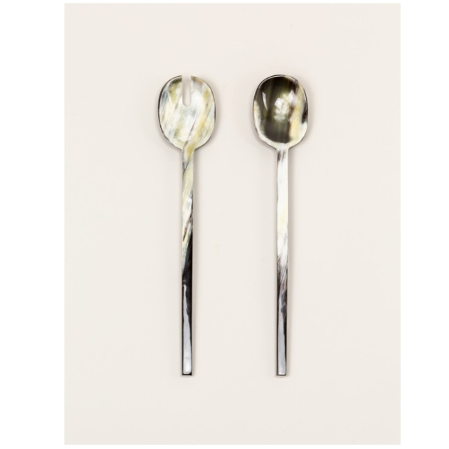 Nous aimons ces petits couverts à salade en corne noire naturelle. Leur forme sobre et élégante, leur brillance leur permettent de s’assortir à tout type de vaisselle.
