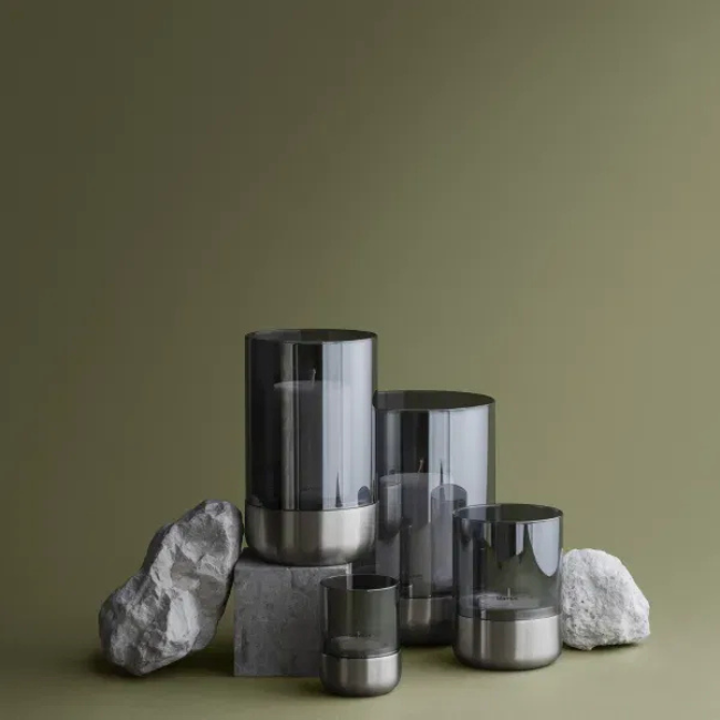 Le Photophore Calma se distingue par son design simple et élégant. Fabriqué en acier mat, il présente une finition douce et uniforme qui attire discrètement l’œil. Sa couleur gris fumé sobre s’intègre facilement à tous les styles de décoration. Le contraste entre l’acier mat et la lumière chaude des bougies crée une ambiance intime et raffinée.