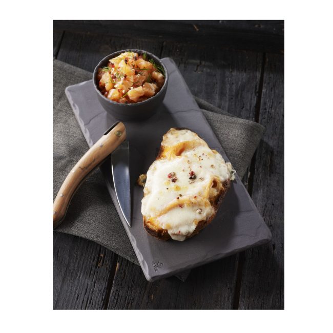 Ce plat rectangulaire est en basalt, un matériau brut dans une matière innovante reprenant l’aspect de l’ardoise naturelle. Une couleur mettant en valeur les mets présentés. Ce plat cumule les atouts de la porcelaine culinaire. Idéal pour présenter mises en bouches, entrées, fromages et desserts.