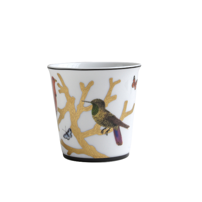 Ce pot à bougie Aux Oiseaux séduit par le raffinement et la sobriété des motifs. Les dessins illustrant nos compagnons des villes et des campagnes sont magnifiques : de la précision et des couleurs chatoyantes. La bougie parfumée est une des 6 fragrances imaginées par Olivia Giacobetti spécialement pour Bernardaud. Joli cadeau.