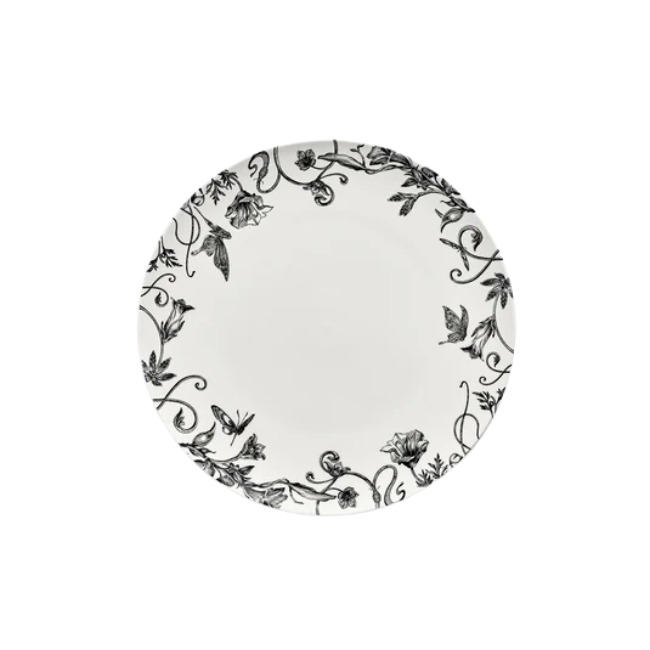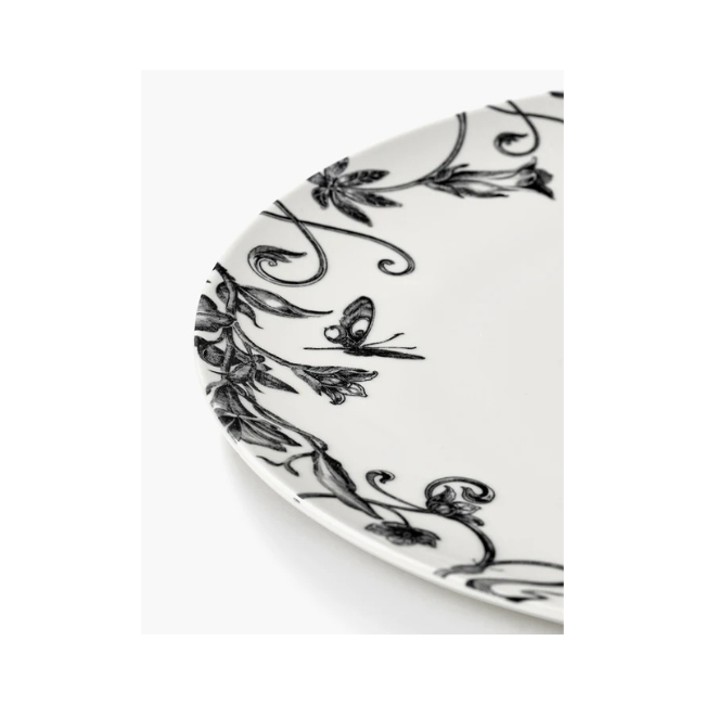 Par ailleurs, le contraste entre le fond blanc de la porcelaine et les touches florales noires rend chaque élément unique et élégant, apportant ainsi une touche de nature raffinée à votre table.