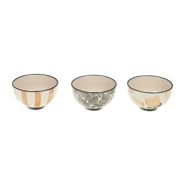 En choisissant cet ensemble de 3 bols, vous optez pour une vaisselle qui sort de l’ordinaire : chaque bol devient un objet à part entière, et ensemble, ils composent un service coordonné.