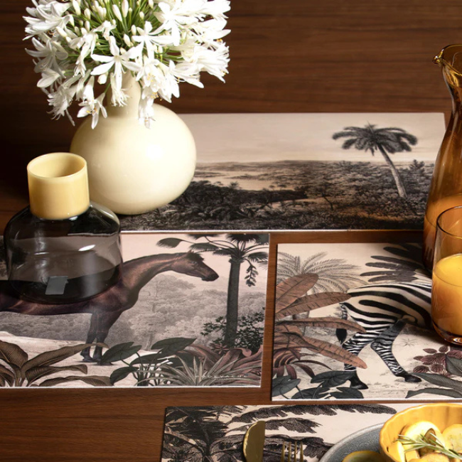 Ajoutez une touche moderne et décorative à votre table avec le set de table en vinyle avec motifs de chez Pôdevache. Conçu pour combiner style et fonctionnalité, ce set de table est l’allié idéal pour toutes vos occasions !  Par conséquent, avec ses motifs et sa texture vinyle, ce set apporte un éclat raffiné et une protection efficace à votre décoration de table.