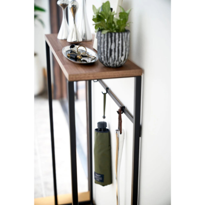 La table console Tower noir est parfaite pour quand “étroit” décrit votre entrée. Apportez une touche de style et d’élégance aux entrées les plus étroites. Accrochez les parapluies aux crochets inférieurs le long du bord, tout en ayant de la place pour un vide-poches ou une décoration.